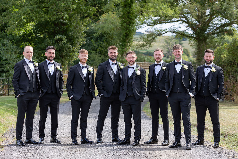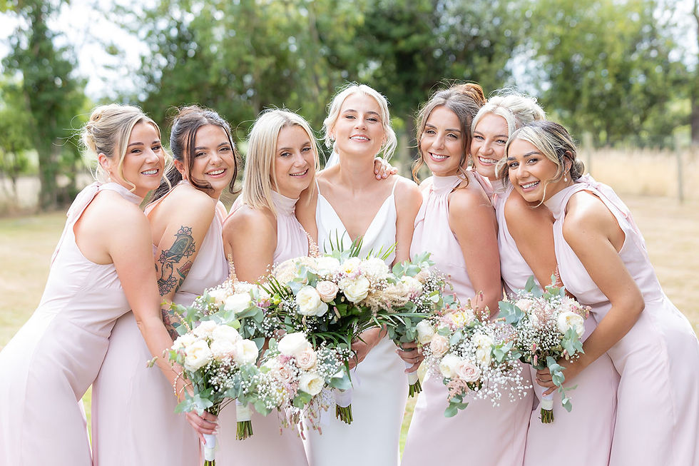 The drinks reception gave guests time to relax - We kept the couple shoot to around 10–15 minutes, using the open space around the farm without overcomplicating anything. Group photos followed, keeping things efficient and organised. We even managed to incorporate Smoke Grenades into the Bridal Party Group Photo's, which looked great against the black barn walls.